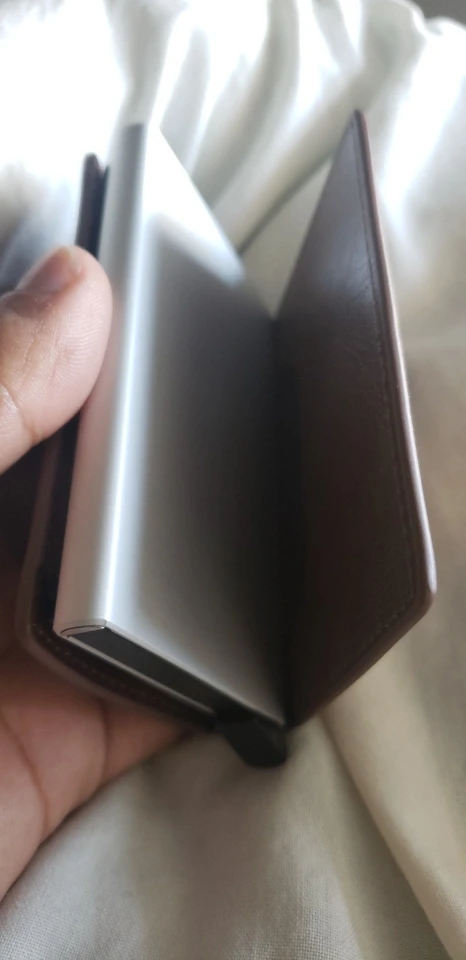 • Very slim and nice looking: Fashion thin design make card holder looks more elegant and vintage. It includes a metal case compartment with pop up button that can holds about 6 cards, plus has 2 additional pockets in the wallet that could be used for other cards ( driver's license, insurance card etc), and a compartment for holding little cash or bills. This little wallet holds everything you need! It makes life easier.