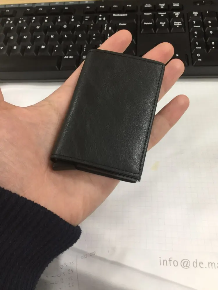 • Smart Design: Different form other credit card wallet,Meeto wallet with the convenient pop-up function all cards slide out gradually, makes it so easy to find which card you're looking for. The cards will not fall out and is a perfect mens smart wallet. No problem to keep it in your front / back pocket. No breaking, no bending.